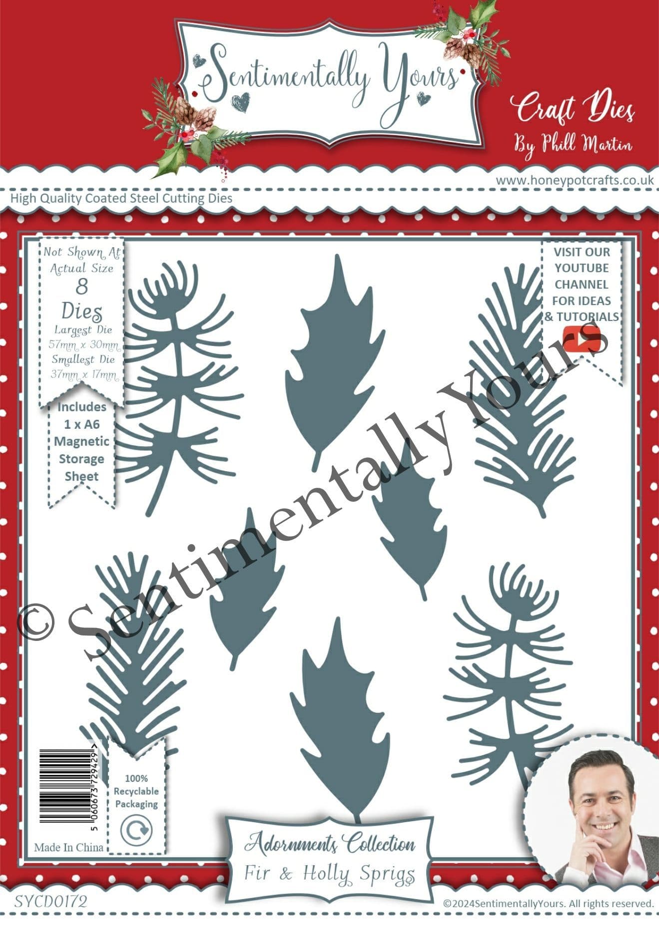 This beautiful set of Fr & Holly Sprigs has 8 dies, with two sizes of the holly leaves and two different fir sprigs, in both left and right facing.. perfectly sized for any and all of your festive projects!